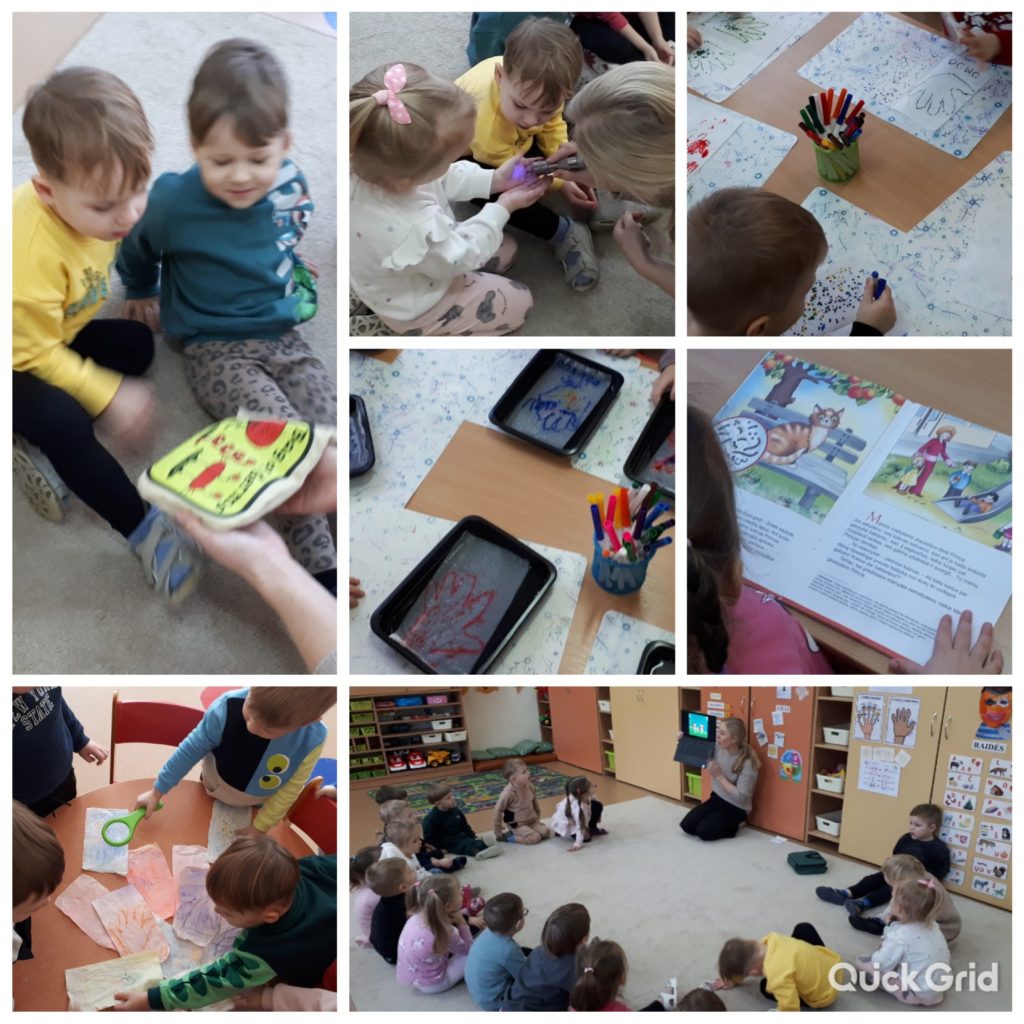 3 gr. ,,Čiauškučiai” vaikai kartu su visuomenės sveikatos specialiste Jurgita aiškinosi, kaip ežiukas nugalėjo peršalimą. Vaikai suprato, kad susirgus būtina likti namie ir gydytis. Mikrobų paieškoms pasitelkėme stebuklingą švieselę, o po to jų ieškojome vandenyje. Prisiminėme, kad nuo ligų mus apsaugo švarios rankytės.