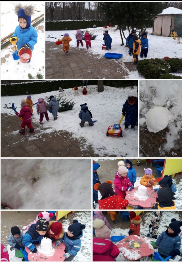 Mums jau pavyksta kartu čiuožti nuo kalniuko, nukasti takus, kepti sniego tortus ir statyti pilis.