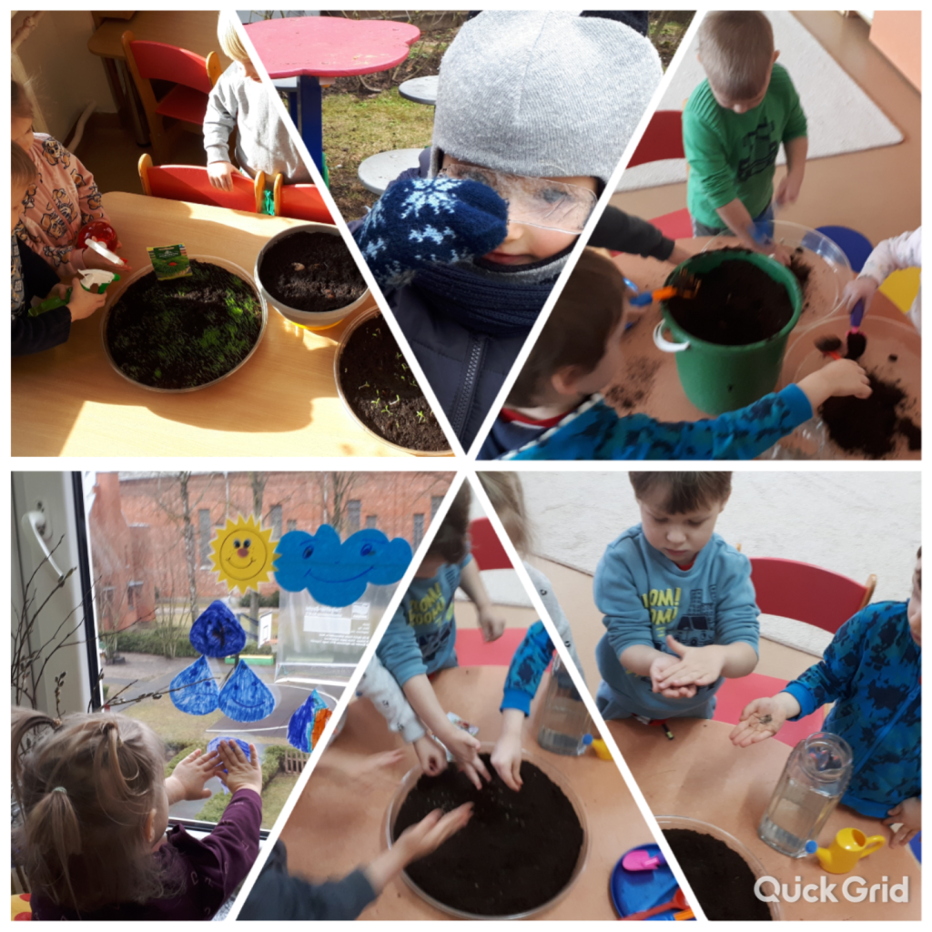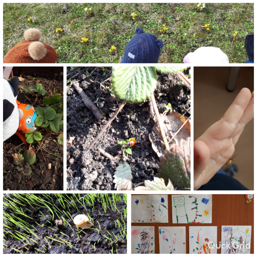 Kiekviena diena atneša, ką nors naujo dar nepatirto. Vieną dieną matome, kaip tirpsta sniegas ir paskutiniai ledukai. Tyrinėjame vandenį jo savybes, koks jis: kietas, minkštas, spalvotas? Spalviname vandens lašelius. Mąstome ar ir sliekams taip pat patinka vanduo? Diskutuojame kodėl sliekai išlenda į žemės paviršių? Gal todėl, kad lyja ir yra šilta? Kitą dieną stebime, kaip auga žolė, keičiasi žydinčios gėlės, krūmai. Bunda gamta po gilaus žiemos miego: sraigės, boružės ir kiti vabalai. Trečią dieną jau mes patys renkame sėklytes. Svarstome: – Kuo augalai skiriasi nuo gyvūnų? Kaip jie auga? Ir kaip juos prižiūrėti? Patys sėjame ir sodiname, kad mūsų žemė būtų žalia.”