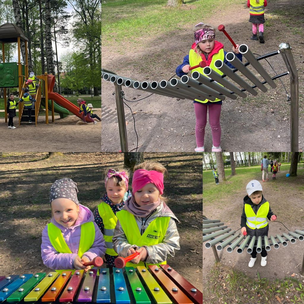 Veiklos vyksta ir šalia esančiame miesto parke. Ugdytiniai čia žaidžia judriuosius žaidimus, tyrinėja naujus objektus, stebi gamtą ir kas kartą laukia „susitikimų“ su voverėmis bei nematytais vabalais. „Klausučiai“ mėgsta groti ir parke esančiais instrumentais, bando atkartoti jau žinomas melodijas, mokosi dalintis, laukti savo eilės, kada galės pagroti norimu instrumentu.
