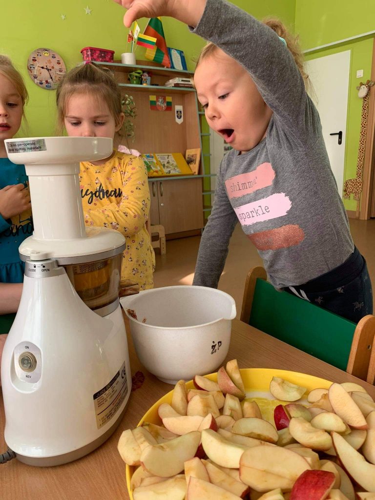 „Klausučiai” susipažino su obuolio savybėmis, spaudė sultis ir jas ragavo. Buvo ne tik skanu, bet ir labai smagu!