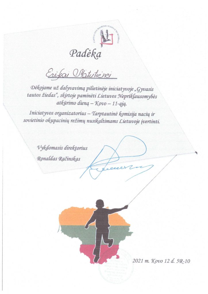 Džiaugiamės, kad „Klausučių” grupės vaikai ir mokytoja Erika dalyvavo pilietinėje iniciatyvoje „Gyvasis tautos žiedas“. Nacionalinę pilietiškumo iniciatyvą inicijuoja Tarptautinė komisija kartu su šios idėjos autoriais – Panevėžio Kastyčio Ramanausko lopšeliu-darželiu. Su akimirkomis iš iniciatyvos galima susipažinti atidarius šią nuorodą:https://www.facebook.com/ldsaulute/videos/247632947082671