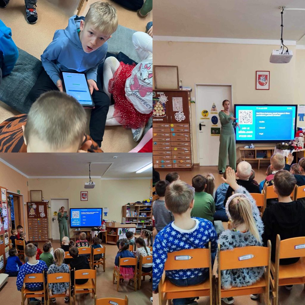 Priešmokyklinukai ir 5 grupės vaikai dalyvavo kalėdiniame protmūšyje, naudojant Slido sistemą. Vaikai sudarė komandas ir naudojant planšetes atsakinėjo į klausimus. Tai nauja ir smagi patirtis.