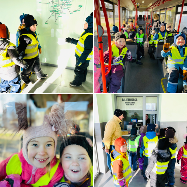 Vaikai kartu su mokytojomis susiplanavo išvyką ir aplankė net dvi stotis-autobusų ir traukinių. Pakeliui aptarė ir kitus objektus, skaitė iškabų, gatvių pavadinimus, įvardino namų numerius, prie pėsčiųjų perėjų prisiminė saugaus eismo taisykles.