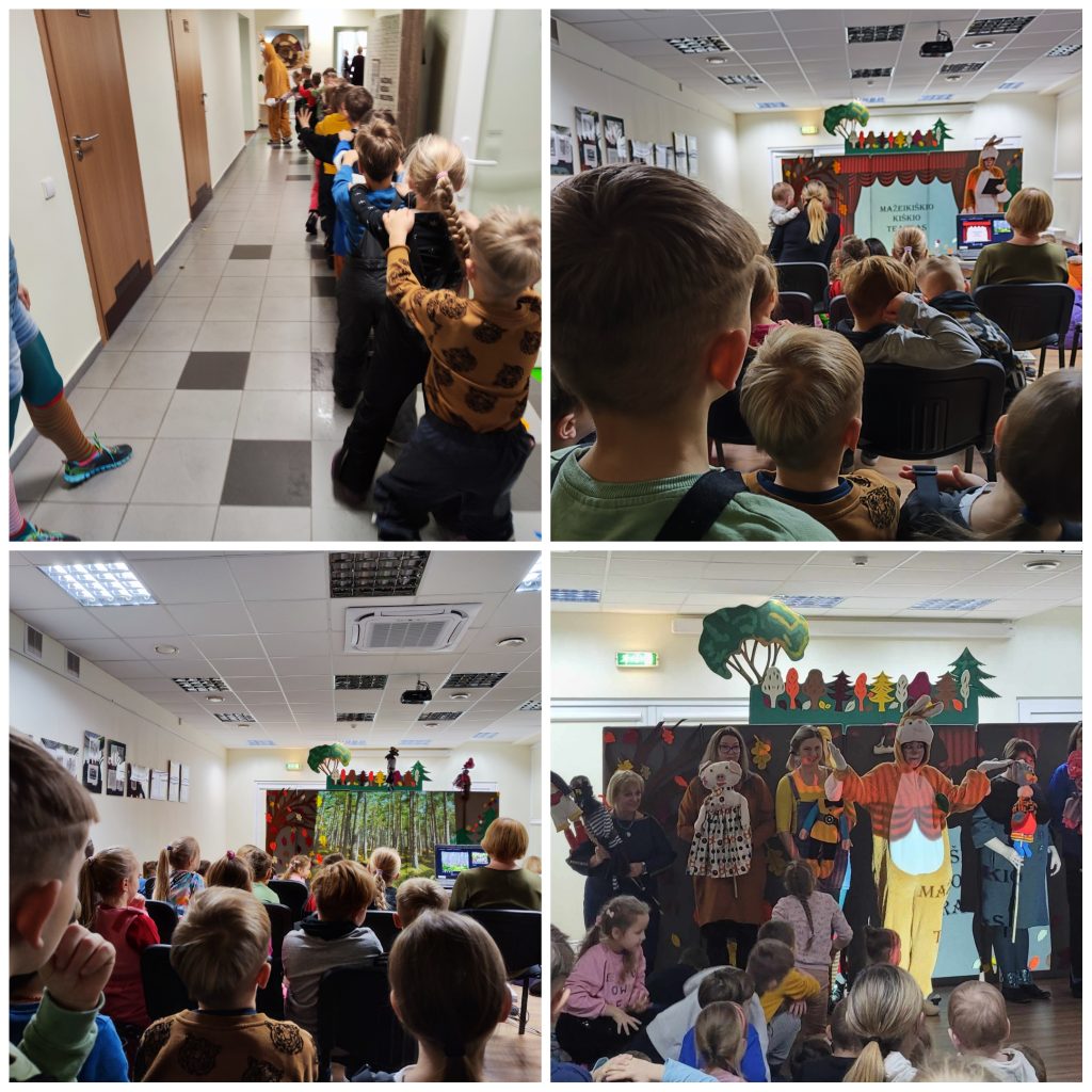 Lapkričio 22 dieną vyresnieji mūsų ugdytiniai lankėsi Mažeikių viešojoje Henriko Nagio bibliotekoje ir dalyvavo Mėgėjų lėlių teatro šventėje ,,Svečiuose pas Mažeikiškį Kiškį”. Priešmokyklinukai buvo pakviesti žiūrėti ,,Mažeikiškio Kiškio teatro” lėlių spektaklį ,,Kaip kiškis batukus pirko”, o 5 grupės vaikai stebėjo Radviliškio rajono savivaldybės viešosios bibliotekos lėlių teatro ,,Boružėlė’ miniatiūras: ,,Peliukų nuotykiai bibliotekoje”, ,,Žvėreliai apie skaitymo naudą”.