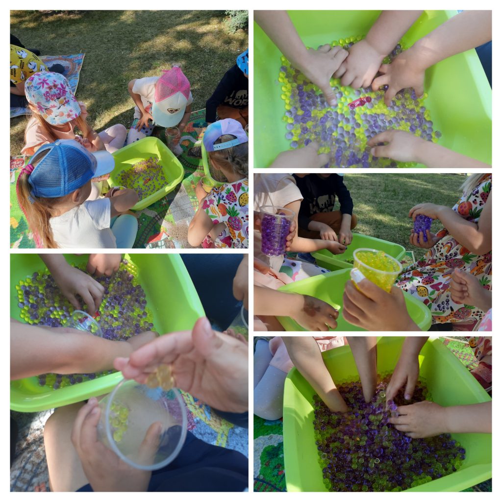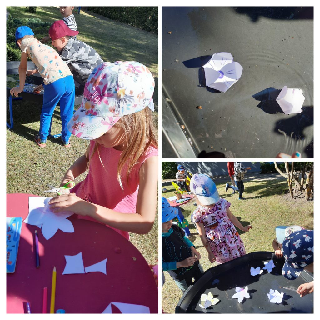 Smagu karštomis vasaros dienomis žaisti su vandeniu. ,,Smalsučių” grupės vaikai lavino miklumą rinkdami pasirinktos spalvos vandens kamuoliukus, juos tyrinėjo liesdami, mėtydami, spausdami delniukuose. Kūrė burlaivius ir juos plukdė, ugdė kantrybę žvejodami savo kurtas žuvytes, stebėjo, kaip vandenyje skleidžiasi jų margintos gėlės.