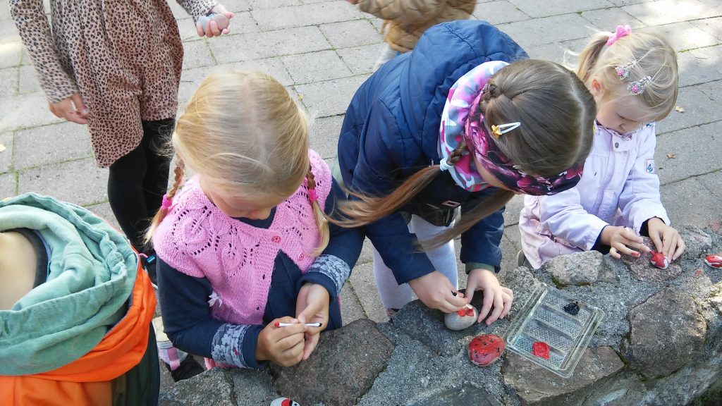Puikus oras leidžia didžiąją dienos dalį praleisti gryname ore. Darželio kieme mėgaujamės bendra veikla ir kūryba, grožimės gamtos spalvomis ir formomis, bandome jas pavaizduoti, atkartoti. Maišome spalvas ir ieškome naujų atspalvių ir formų.