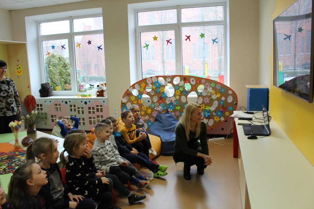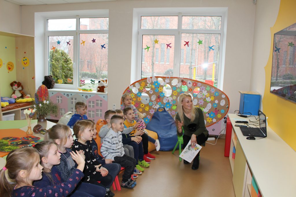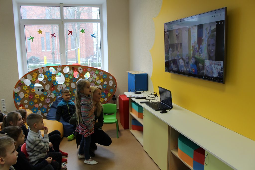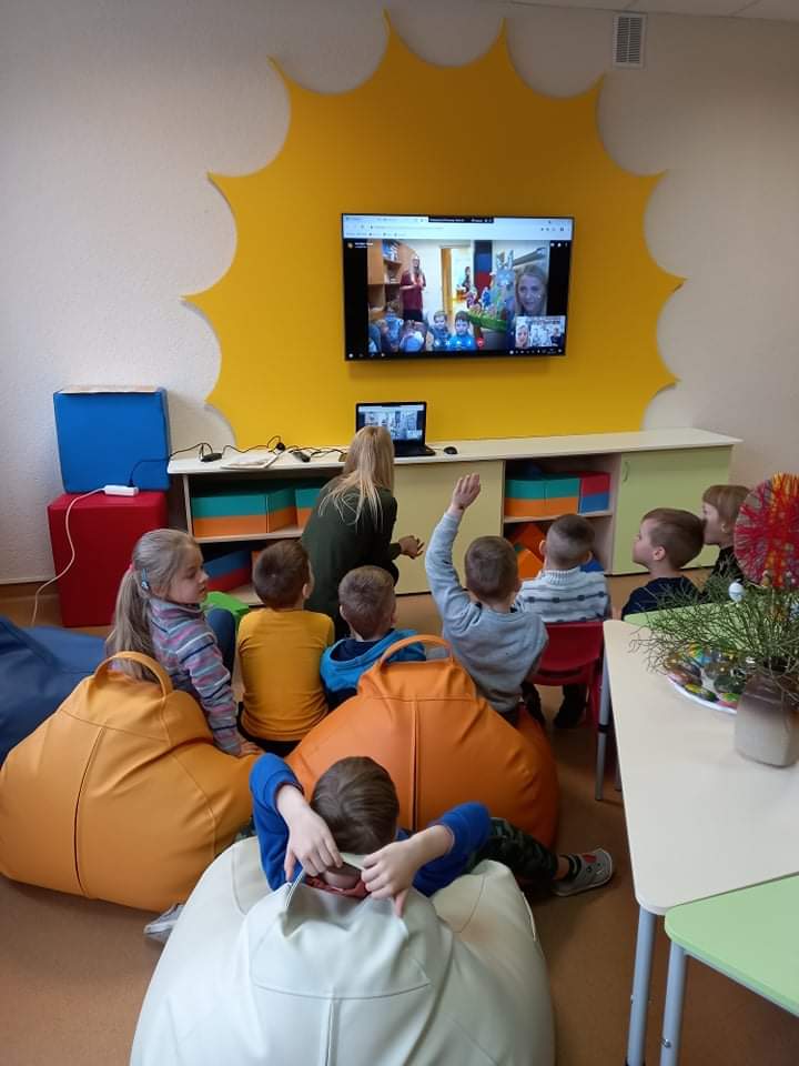 Balandžio pirmą dieną ikimokyklinio ugdymo grupės „Smalsučiai” vaikai virtualioje erdvėje susitiko su Klaipėdos miesto lopšelio-darželio „Versmė” ikimokyklinio ugdymo grupės „Saulutės” ugdytiniais. Pokalbio per „Skype” metu vaikai susipažino, demonstravo vieni kitiems savo sukurtus margučius, kartu dainavo bei deklamavo eilėraščius apie Velykas. Tai buvo smagi, nauja patirtis, ne tik vaikams, bet ir jų mokytojoms Aušrai ir Aurelijai.