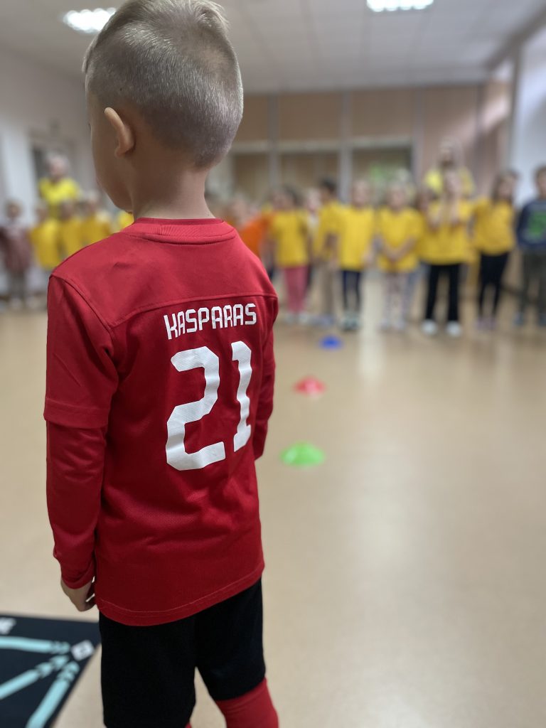 Tęsiant įdomų ir įtraukiantį „Futboliuko” projektą, 5 ir 6 grupių ugdytiniai turėjo ypatingą galimybę susipažinti su futbolo pasauliu iš pirmų lūpų – buvęs mūsų įstaigos ugdytinis Kasparas, šiuo metu FK „Atmosfera” klubą, mielai pasidalijo savo patirtimi. Vaikai sužinojo apie futbolo aprangą, kamuolius, pagrindines žaidimo taisykles. Kasparas pademonstravo savo individualią treniruotę ir futbolo triukus, įkvėpdamas mažuosius siekti savo tikslų sporte. Dėkojame Kasparui ir jo mamytei.