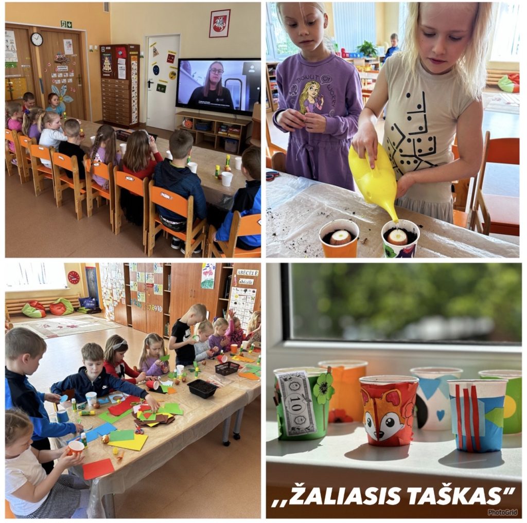 Priešmokyklinukai kartu su mokytoja Sintija dalyvavo pakuočių atliekų tvarkymo organizacijos „Žaliasis taškas“ kūrybinėje edukacijoje „Žaliasis raštingumas“. Edukacijos metu, kuri vyko nuotoliniu būdu per „Zoom“ platformą, vaikai naudojo antrines žaliavas ir sodino svogūnus.