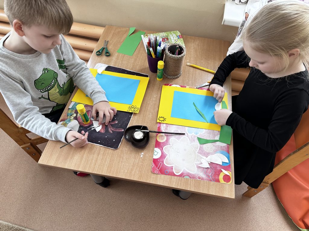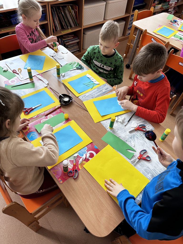 Priešmokyklinukai diskutavo, kalbėjo, kad vos tik pradėjus tirpti sniegui, plynėse prasikala pirmieji snieguolių žiedai, bundančios gamtos pranašai. Vaikai aptarė, kokios formos, spalvos snieguolių žiedai ir padarė kūrybinius darbus – ,,Snieguoles”.