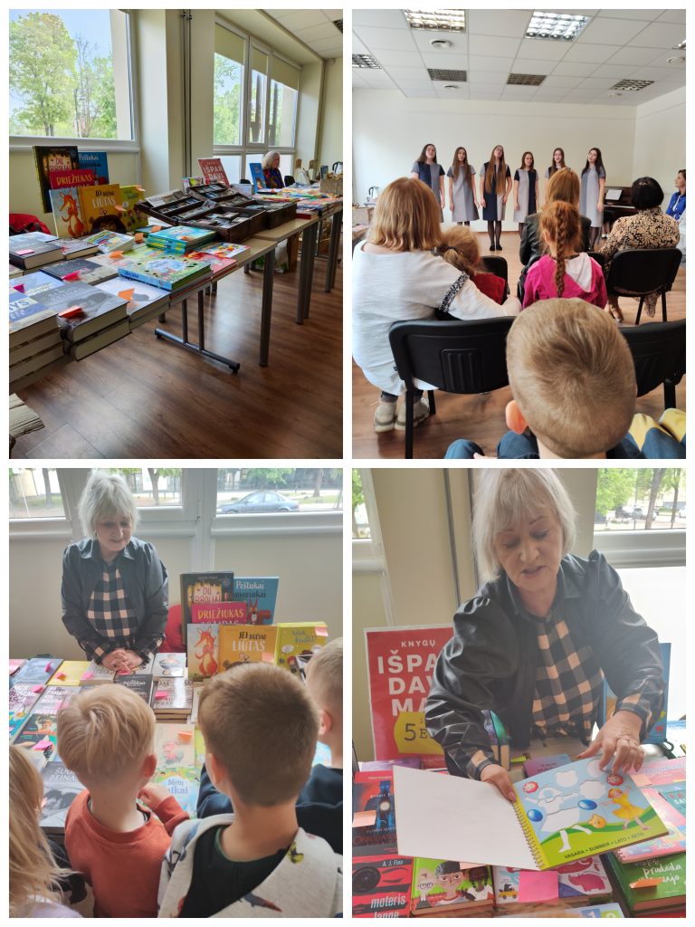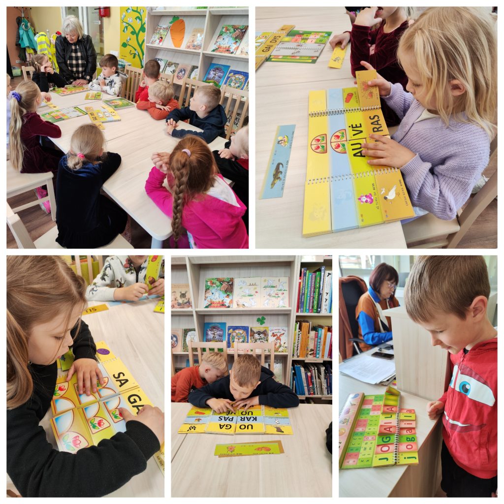 Šiandien mūsų priešmokyklinukai keliavo į Mažeikių Henriko Nagio viešąją biblioteką, kur vyko Leidyklų diena. Vaikai dalyvavo edukaciniuose užsėmimuose „Skiemenų dėlionė“, „Jungiu skiemenis“, „Skaitau žodžius“, lankėsi knygų mugėje bei klausėsi Mažeikių Merkelio Račkausko gimnazijos merginų vokalinio ansamblio atliekamų kūrinių.