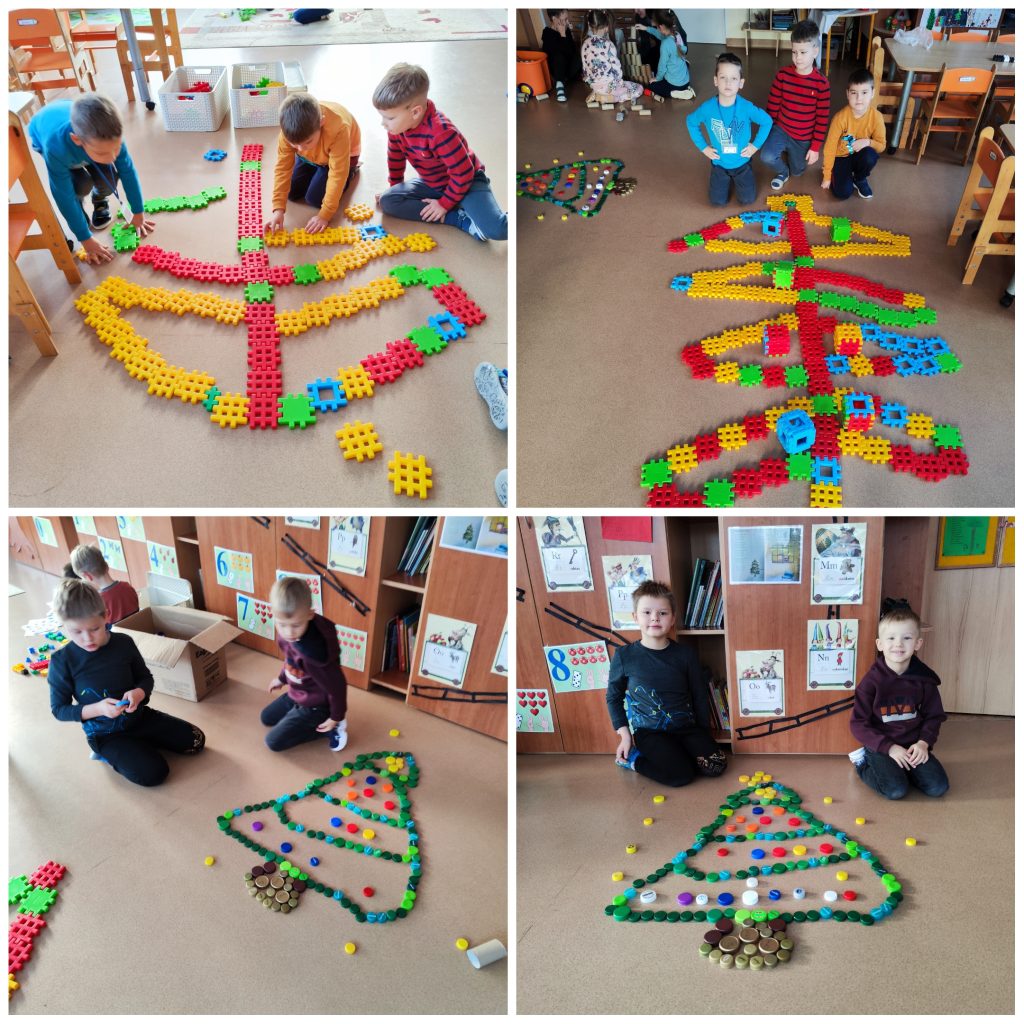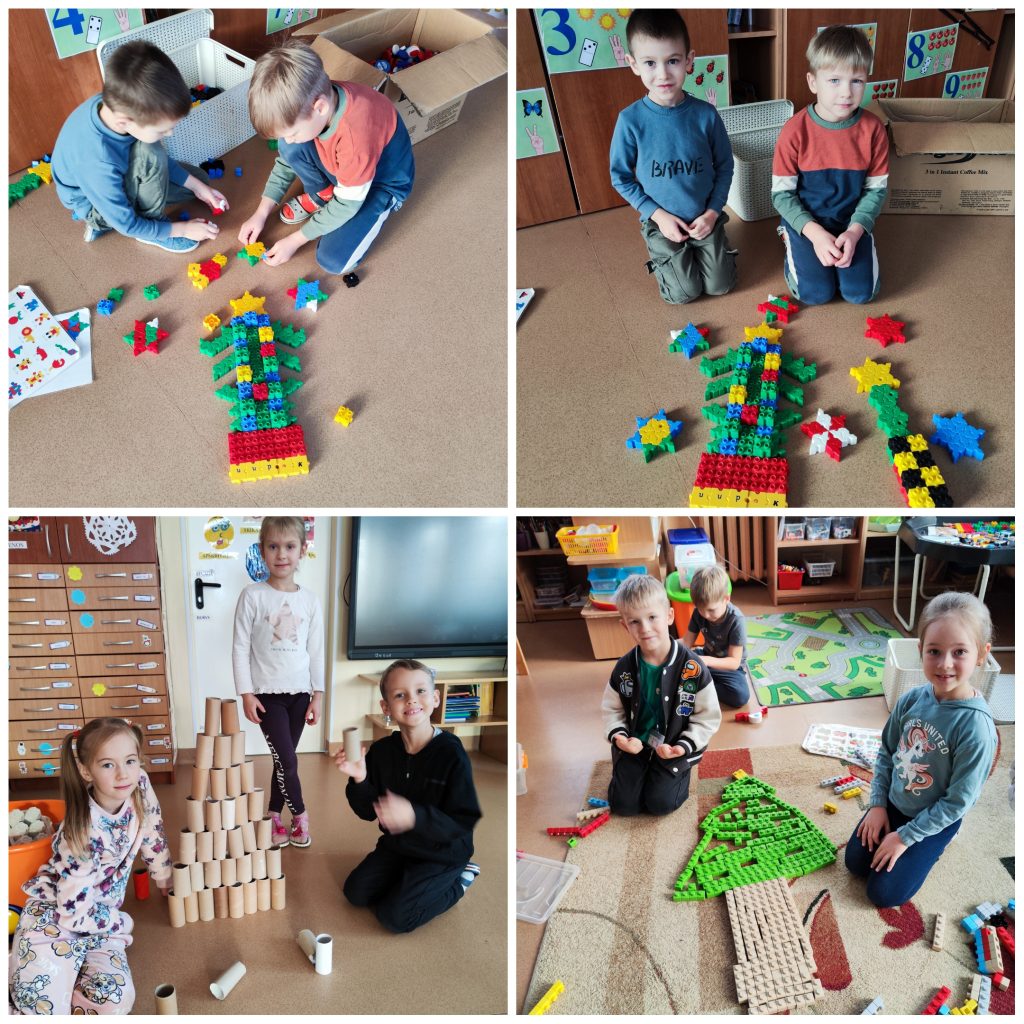 Džiaugėmės mūsų grupes gražia eglute, kurią pasipuošėme kartu su tėveliais. Diskutavome, kaip galima sukurti kitokias eglutes, kuo jas papuošti. Pasiskirstę mažomis komandomis, iš įvairių konstravimo priemonių, antrinių žaliavų kūrėme eglutes.