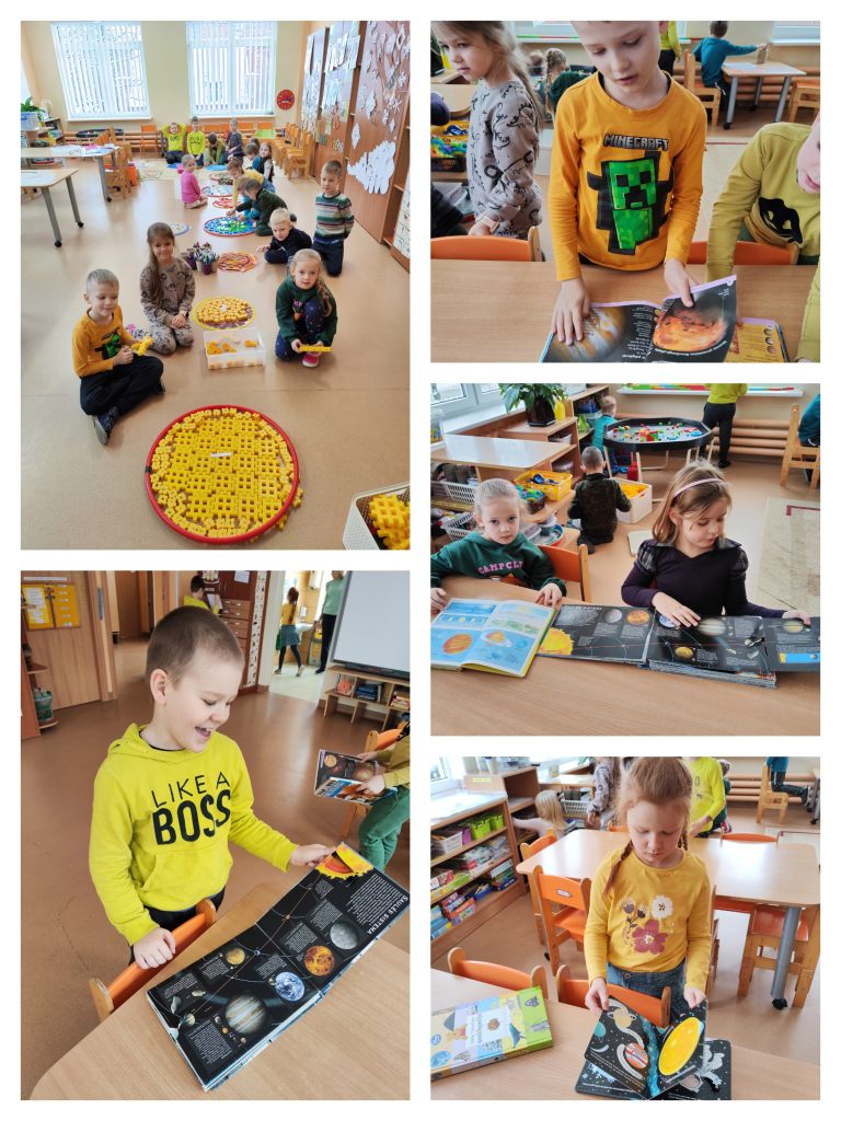 Priešmokyklinukams kyla daug klausimų apie dangaus kūnus: kas mums šviečia iš dangaus? Kodėl mėnulis keičia formą? Kiek trunka kelionė į mėnulį? ir … Vaikai informacijos ieškojo knygose, žiūrėjo filmukus apie saulės sistemą, domėjosi planetų pavadinimais. Klausėsi draugų, mokytojų pasakojimų apie įvairius dangaus kūnus. Dirbdami grupelėse, kūrė planetas.