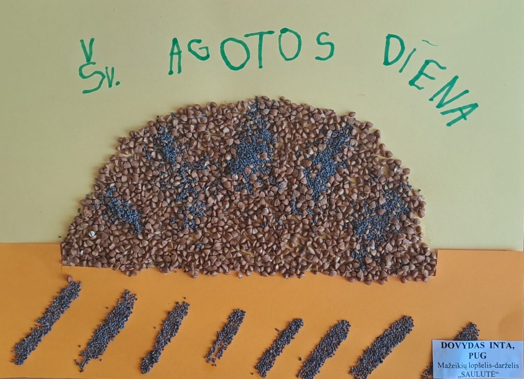 Priešmokyklinio ugdymo grupės vaikai kartu specialiąja pedagoge Vilma dalyvavo respublikinėje specialiųjų ugdymosi poreikių turinčių mokinių virtualioje kūrybinių darbų parodoje ,,Šv. Agotos duonos tradicijos“, nes vasario 5-ąją dieną minima Šv. Agotos arba Duonos diena.