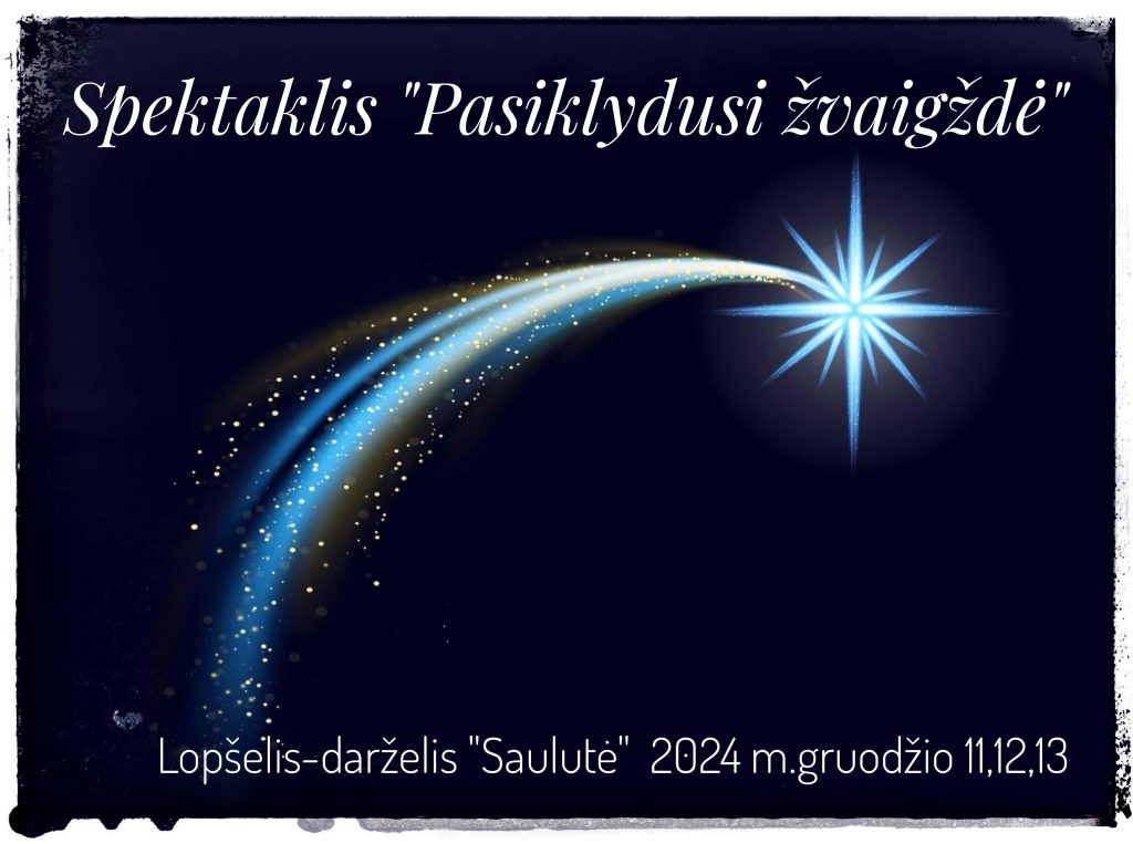 Lopšelis-darželis „Saulutė” gruodžio 11,12,13 dienomis kviečia priešmokyklinio amžiaus vaikus į renginį – spektaklį  „Pasiklydusi žvaigždė”. Užsiregistravus į renginį https://www.semiplius.lt/renginiai/renginiu-kalendorius/mazeikiu-rajono-savivaldybe/889236343 sistemoje, reikia susisiekti dėl rezervacijos Jums patogiu laiku su Mažeikių lopšelio – darželio  „Saulutė ” mokytojomis Rima Michalenko, Natalija Vainutiene.