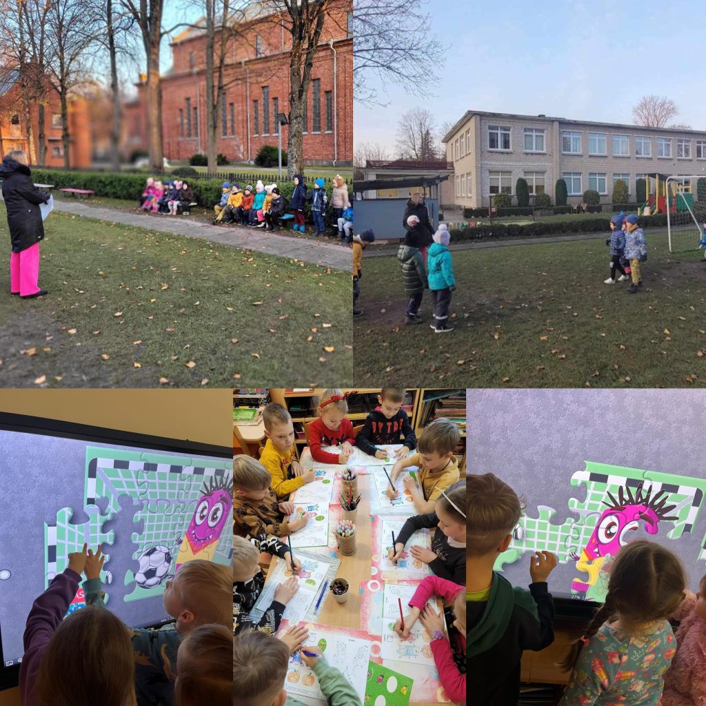 Projekto ,,Futboliukas” lapkričio mėnesio užduotis – futbolo taisyklių aptarimas ir varžymasis tarpusavyje. Vaikai pasiskirstė komandomis, kas žais futbolą, o kas lavins balso stygas, šokių judesius ir palaikys žaidžiančius draugus. Taip pat atliko interaktyvias užduotis prie išmaniosios lentos bei rankos lavinimo užduotis.