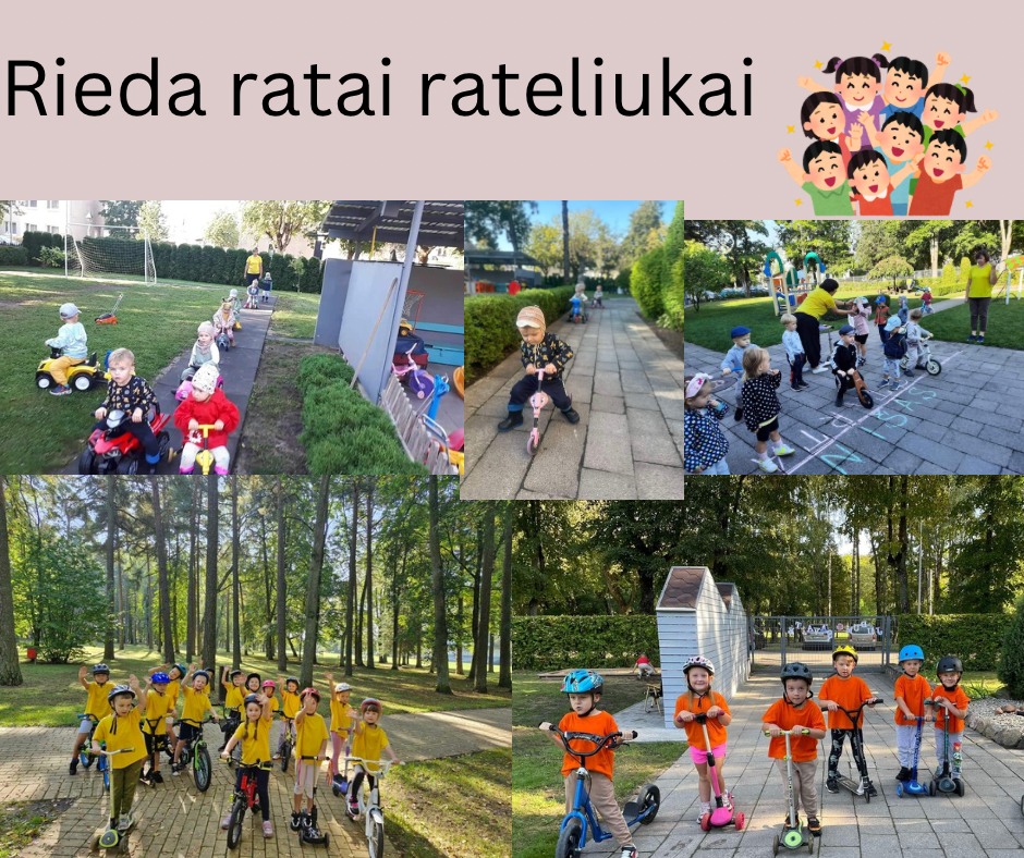 Mūsų darželio vaikai dalyvavo RIUKKPA organizuotoje akcijoje „Rieda ratai rateliukai“, skirtoje Europos dienai be automobilio paminėti. Vaikai į darželį atvyko su dviračiais, paspirtukais ir kitomis transporto priemonėmis be variklių. Akcijos metu jie važinėjo paruošta trasa, dalyvavo judriuose žaidimuose ir smagiai leido laiką. Šis renginys paskatino vaikus susimąstyti apie aplinkos apsaugą ir sveiką gyvenimo būdą, ragino rinktis ekologiškas judėjimo priemones.