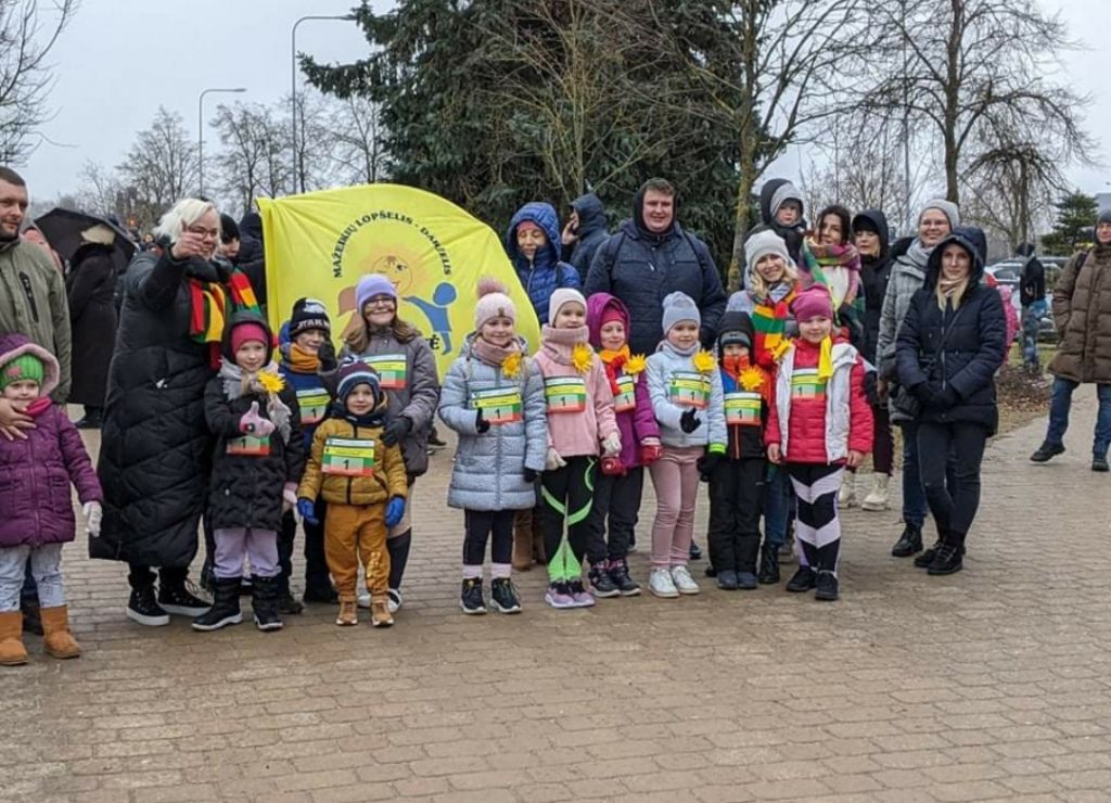 Vasario 16 ąją, nepabūgę atšiauraus vėjo ir lietaus, senamiestyje susirinko „Saulutės“ bendruomenės nariai – visi dalyvavo vasario 16-osios renginyje”Bėgame už laisvę”.