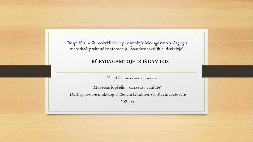 Gruodžio 7 dieną vyko respublikinė ikimokyklinio ir priešmokyklinio ugdymo pedagogų metodinė-praktinė konferencija „Šiandienos iššūkiai darželyje”. Savo patirtimi dalijosi ir mūsų darželio mokytojos Renata Daukšienė ir Žavinta Gorytė.