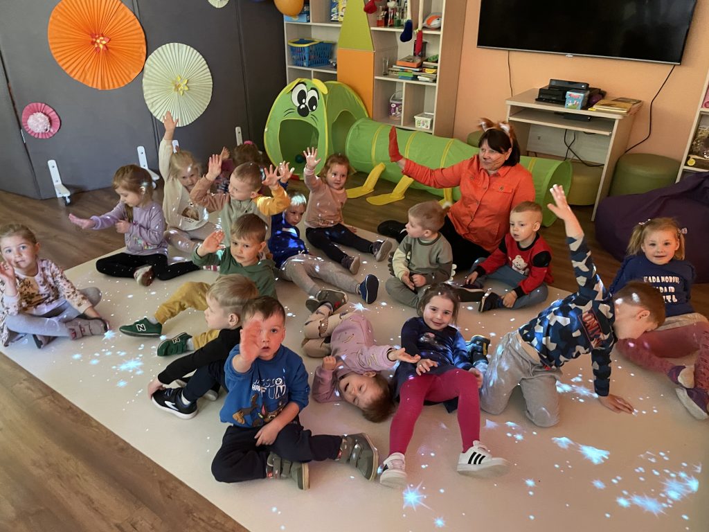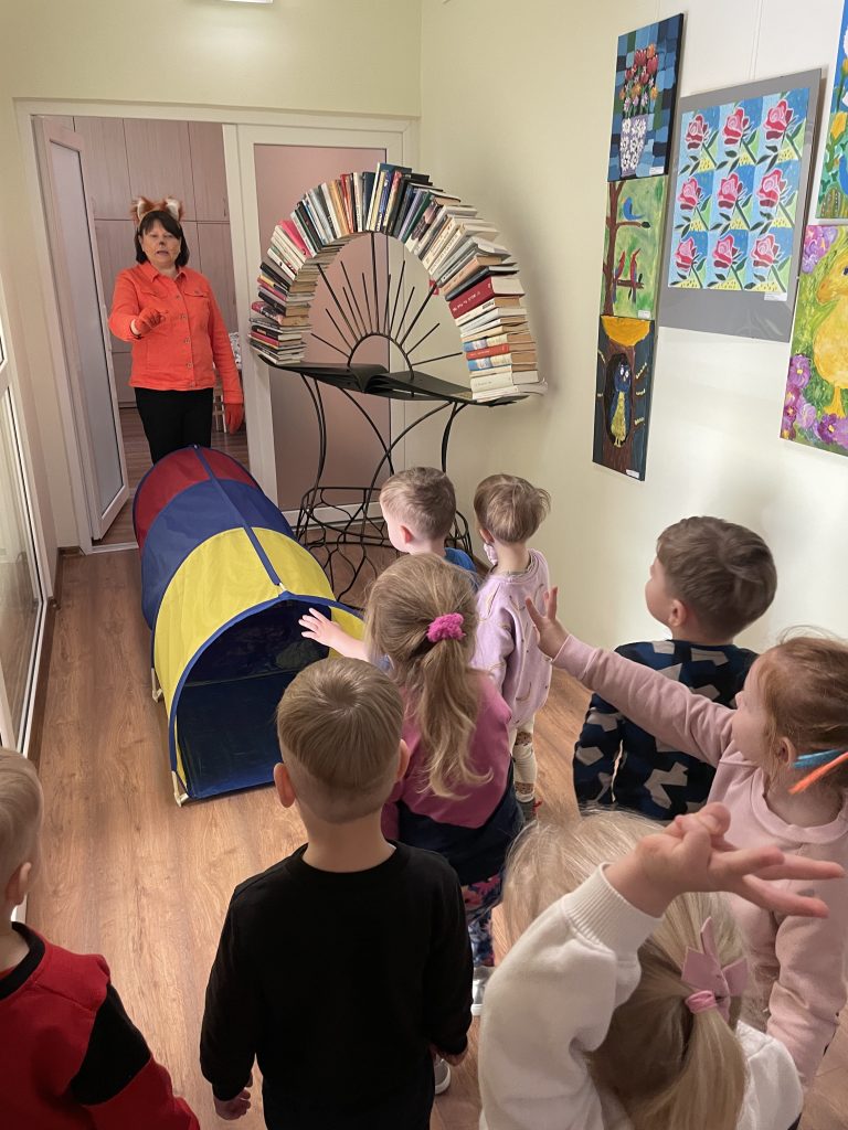 ,,Čiauškučių“ grupės vaikai kartu su mokytojomis vyko į Mažeikių Henriko Nagio viešąją biblioteką. Čia vaikai apžiūrėjo mėgstamas knygas, stebėjo lėlių spektaklį ,,Peliukas ir jo knyga“, keliavo knygų lentynų labirintais, įveikė trasą ir pateko į stebuklingą kambarį, kur kartu su Voveraite mėgavosi interaktyviosiomis grindimis: gaudė žuvis, sprogdino balionus, grojo pianinu, stebėjo žvaigždes.