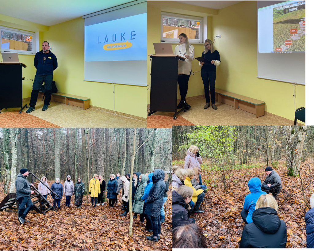 Lapkričio 11 dieną mūsų įstaigos mokytojos vyko į Tirkšlių darželį „Giliukas” ir dalyvavo seminare „Patirtinis ugdymas įstaigos edukacinėse erdvėse”. Seminarą vedė „Lauko darželio” vadovas Tomas Audenis. Lektorius pristatė, kokios gali būti edukacinės erdvės lauke, pateikė pavyzdžių ir idėjų. Mūsų mokytojos Natalija ir Žavinta pristatė pranešimą „Vaikų kūrybinės laisvės erdvė”. Renginys buvo informatyvus ir naudingas.