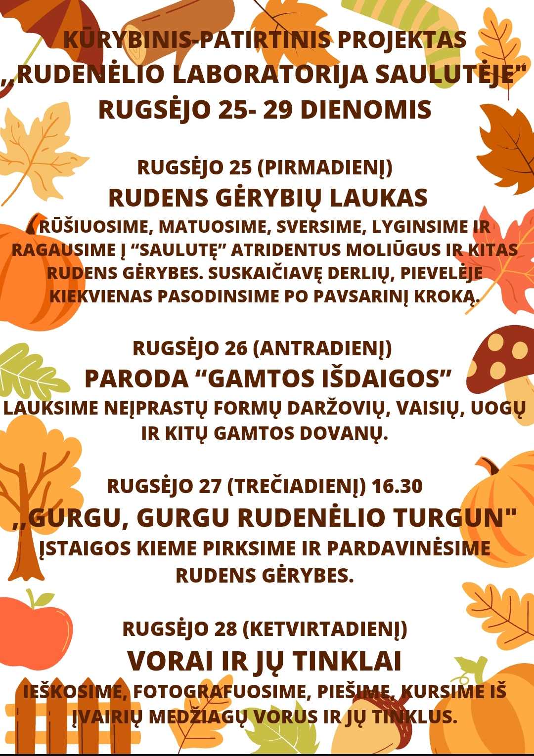Kūrybinis-patirtinis projektas „Rudenėlio laboratorija Saulutėje”