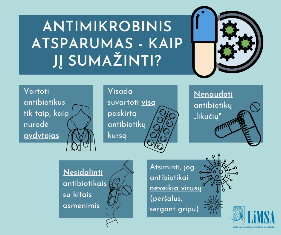 • antibiotikus reikia vartoti taip, kaip nurodė gydytojas;
