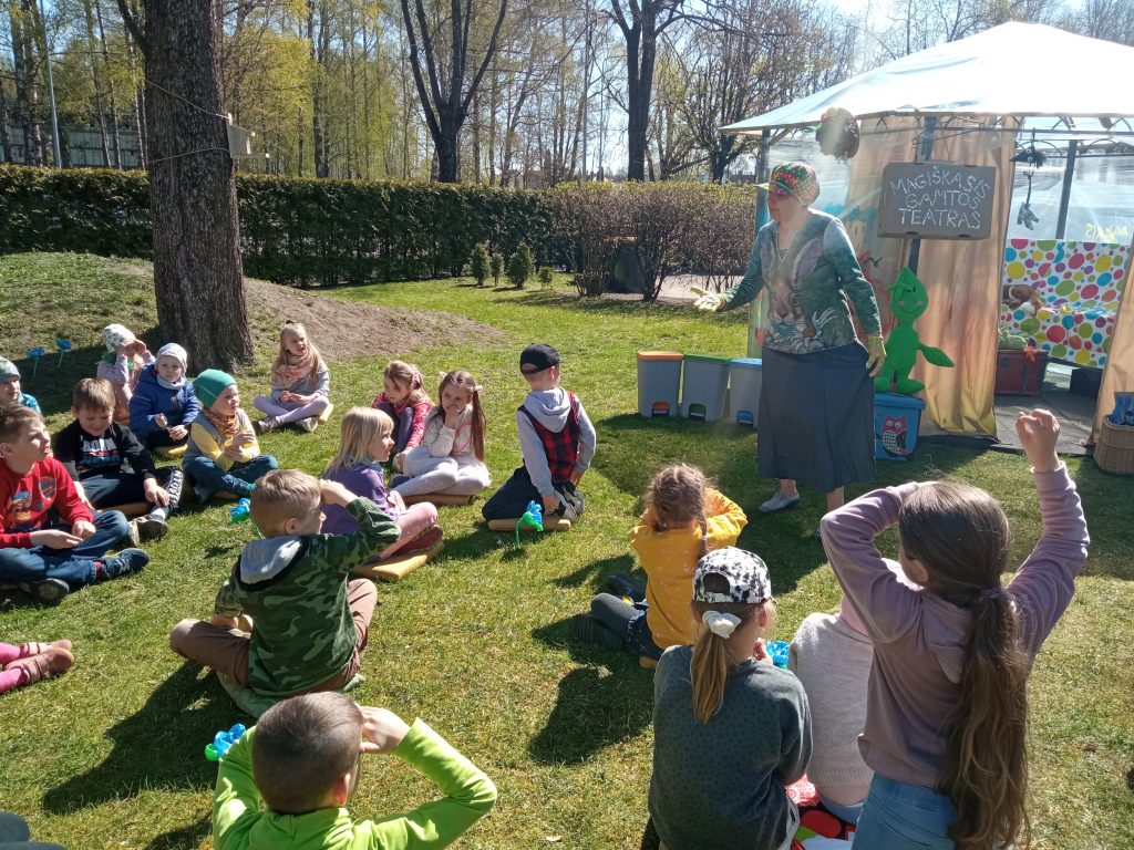 Pasakų personažai Kiškė Pasakiškė ir Varna Karkena, atidariusios „Magiškąjį gamtos teatrą“, pakvietė vaikus aktyviai dalyvauti pokalbiuose, diskusijose, improvizacijose apie tai, kaip reikia saugoti gamtą, žemės turtus. Kartu žaisdami, improvizuodami vėją, vabalus, paukščius, gyvūnus, žvėris, dainuodami, kurdami pamokančias istorijas, vaikai parodė, kaip geba stebėti gamtą, tyrinėti, pamatyti, išgirsti, pajusti, daryti išvadas. O pati teisingiausia ir dažnai kartojama išvada, kad: