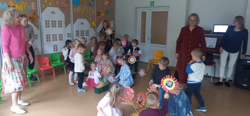 Vaikai diskutavo, kuo svarbūs mums mama ir tėtis, kaip dar galima juos maloniai pavadinti, dekoravo žodžius ,,MAMYTĖ”,,,TĖVELIS”, piešė mamų portretus, kūrė dovanas- gėles. Kartu su mama ir tėčiu dainavo dainas, deklamavo eilėraščius, šokto bei grojo.