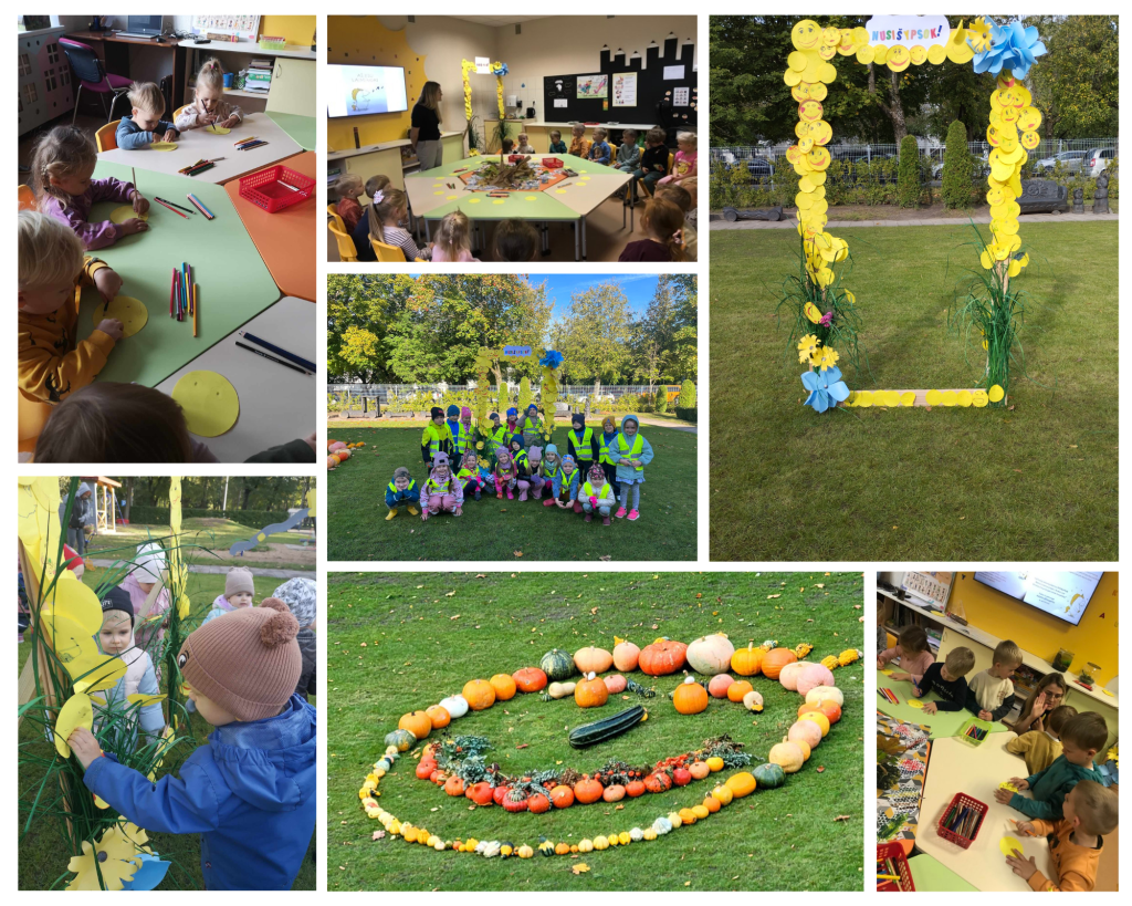 Šiandien pas mus darželyje švenčiama Tarptautinė šypsenos diena! Visą šią savaitę socialinė pedagogė Erika kalbėjosi su vaikais apie džiaugsmo emociją, piešė šypsenas, vaikai sukūrė džiaugsmo šypseną iš moliūgų.