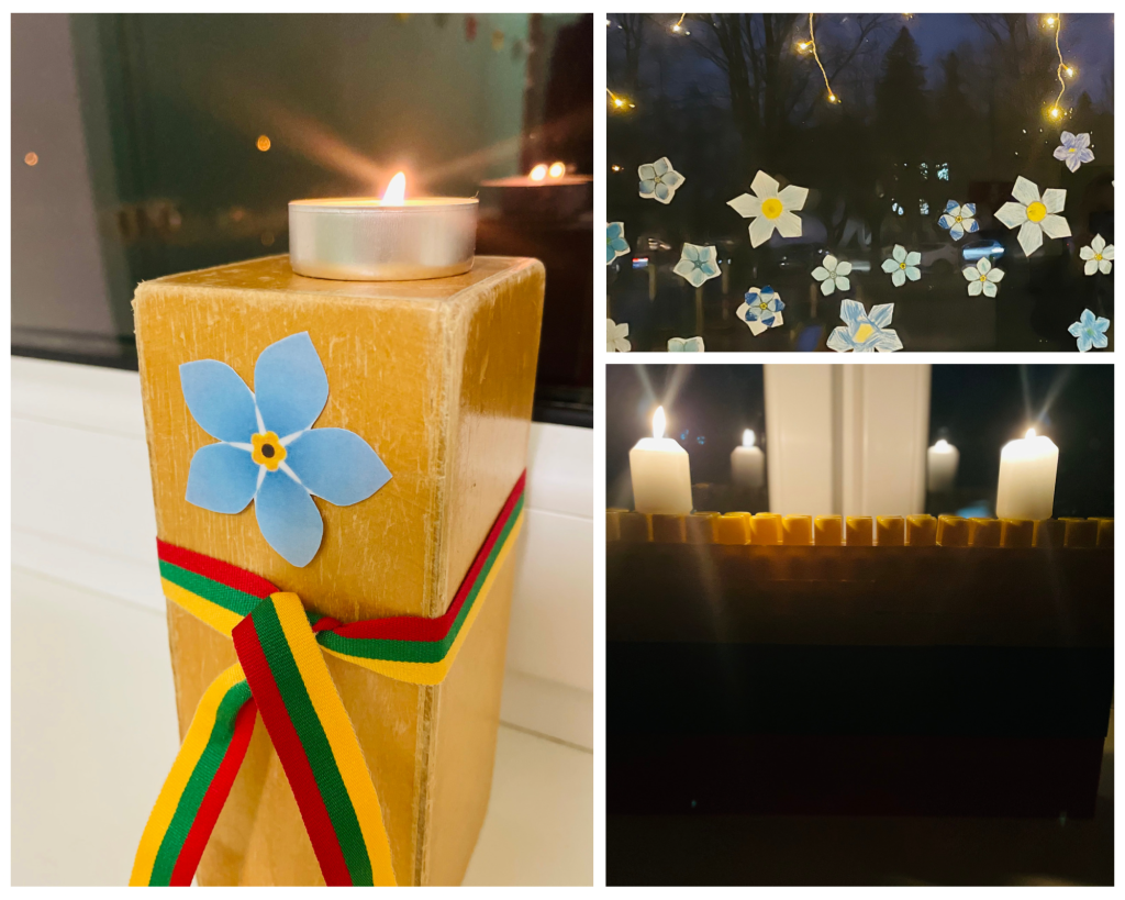 Šiemet, kaip ir kasmet, dalyvaujame pilietinėje iniciatyvoje ,,Atmintis gyva, nes liudija“. Drauge su visa bendruomene uždegėme atminimo žvakes žuvusiems už laisvę. Vyresnieji darželio ugdytiniai kartu su pedagogais aptarė, kodėl mums visiems svarbi ši data, patys mažiausi- piešė Lietuvos vėliavą, kūrė neužmirštuolių žiedus, konstravo trispalves pilis.