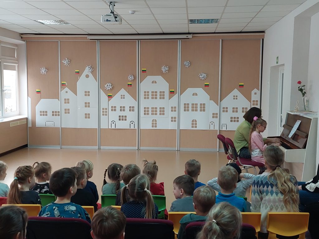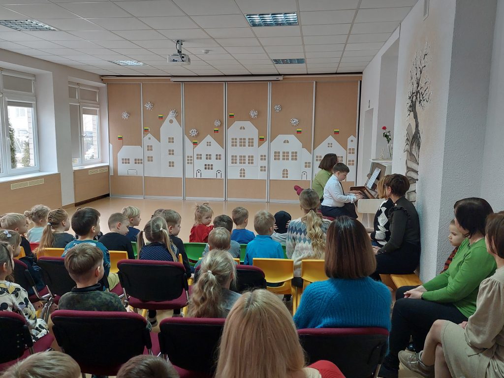 Sausio 16 d. mūsų darželyje svečiavosi Mažeikių Vytauto Klovos muzikos mokyklos mokiniai ir jų mokytoja Nina Kaveckienė. Popietę vaikai praleido klausydami pianino garsų bei dalindamiesi savo įspūdžiais apie girdėtos muzikos spalvas ir nuotaikas. Mažieji klausytojai atlikėjams dovanojo daug daug plojimų.