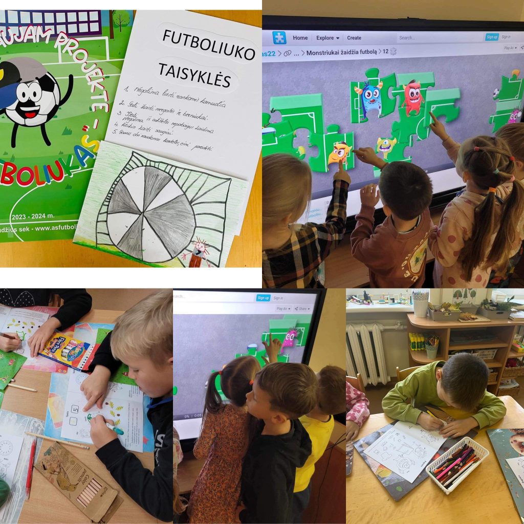 Šiame projekte dalyvauja ir mūsų įstaigos ugdytiniai, 5 grupės ir priešmokyklinio ugdymo grupės vaikai. Smagu, kad futbolą galima pažinti ne tik žaidžiant aikštelėje, bet ir kuriant, atliekant įvairias lavinamąsias užduotis.