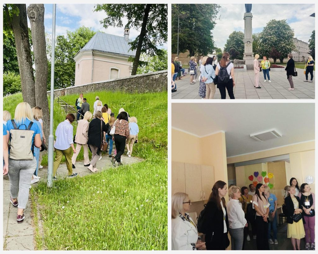 Susitikimo metu apžiūrėtos Prienų lopšelio-darželio vidaus ir lauko erdvės, vyko paskaita „Kaip nepasiklysti ugdymo labirintuose“ bei edukacinė programa „Senųjų Prienų beieškant…“