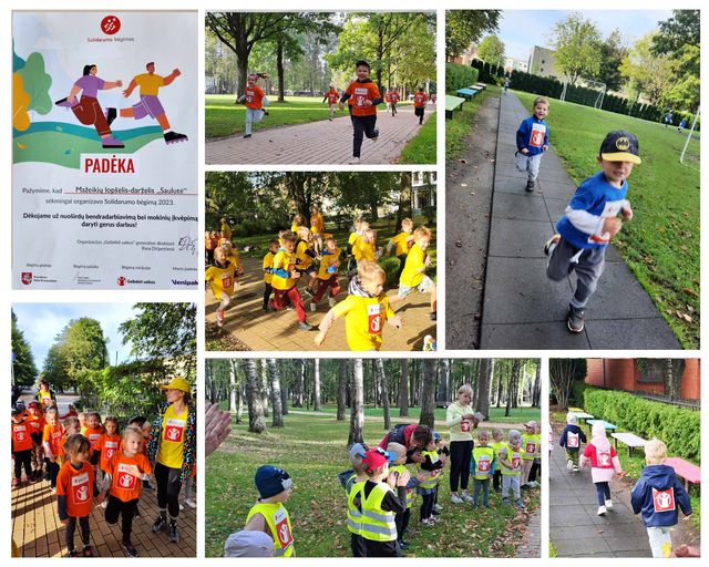 Rugsėjo 21 dieną mūsų darželio bendruomenė dalyvavo socialinėje akcijoje „Solidarumo bėgimas 2023“. Tai organizacijos „Gelbėkit vaikus“ socialinė iniciatyva, kurios tikslas – ugdyti solidarumą, bendrystę, pagalbą ir palaikymą kitiems, kartu skatinanti emocinės ir fizinės sveikatos stiprinimą. #solidarumobėgimas2023