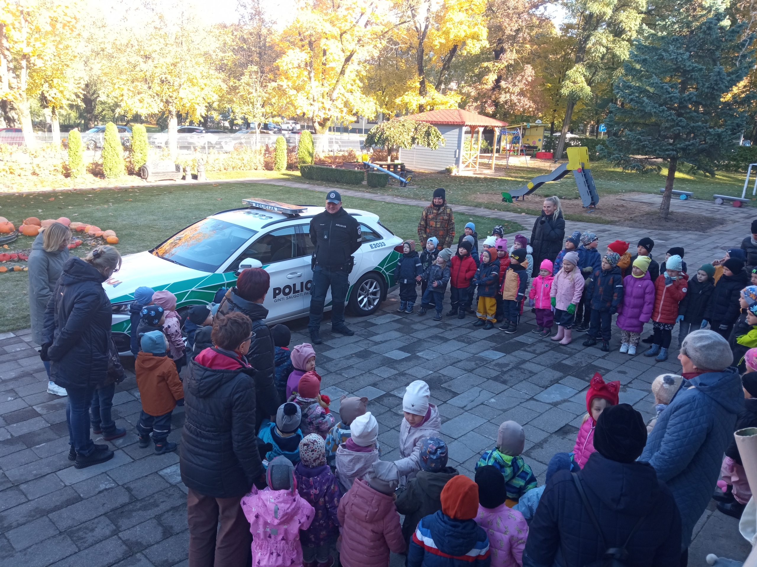 Tamsėjančiu metų laiku atšvaitų segėjimas, nešiojimas tampa vis didesne aktualija. Ypatingai svarbus uždavinys – įpratinti vaikus „prisijaukinti” atšvaitus, kurie taptų geriausiais jų draugais kelyje. Šiandien mūsų įstaigoje lankėsi Mažeikių rajono policijos komisariato bendruomenės pareigūnas Remigijus Stonkus ir jo bičiulis Amsis. Pareigūnas priminė vaikams, kaip teisingai segėti atšvaitą, kaip saugiai pereiti gatvę.