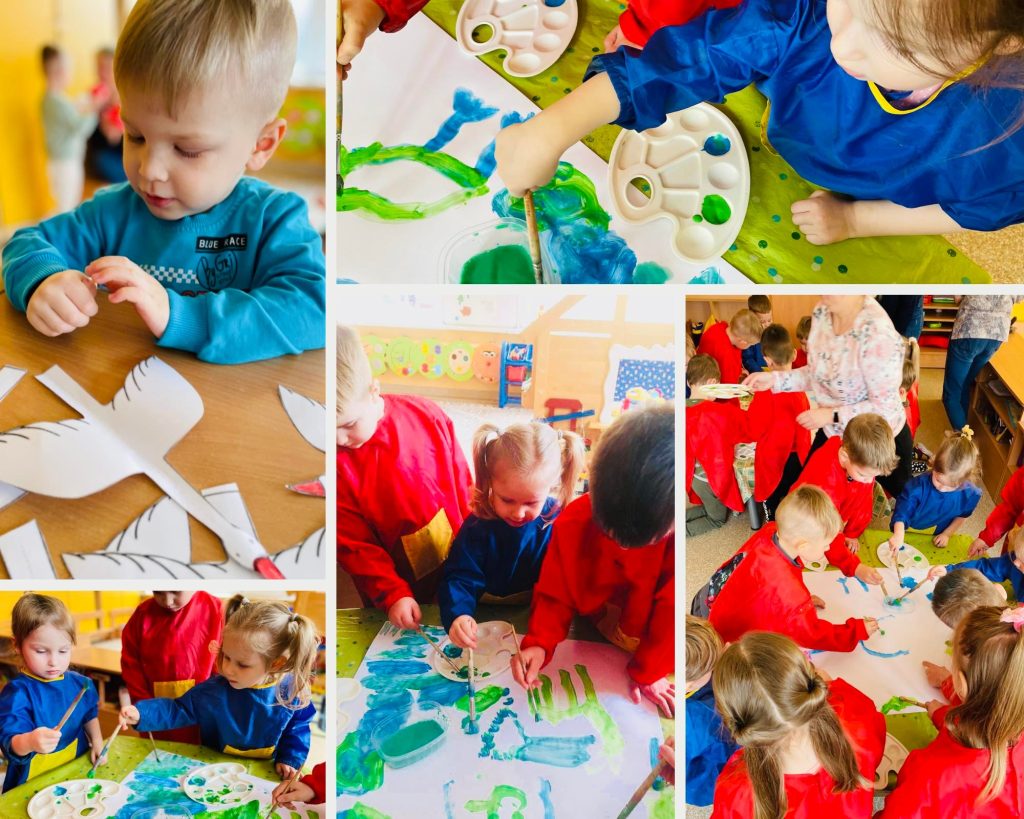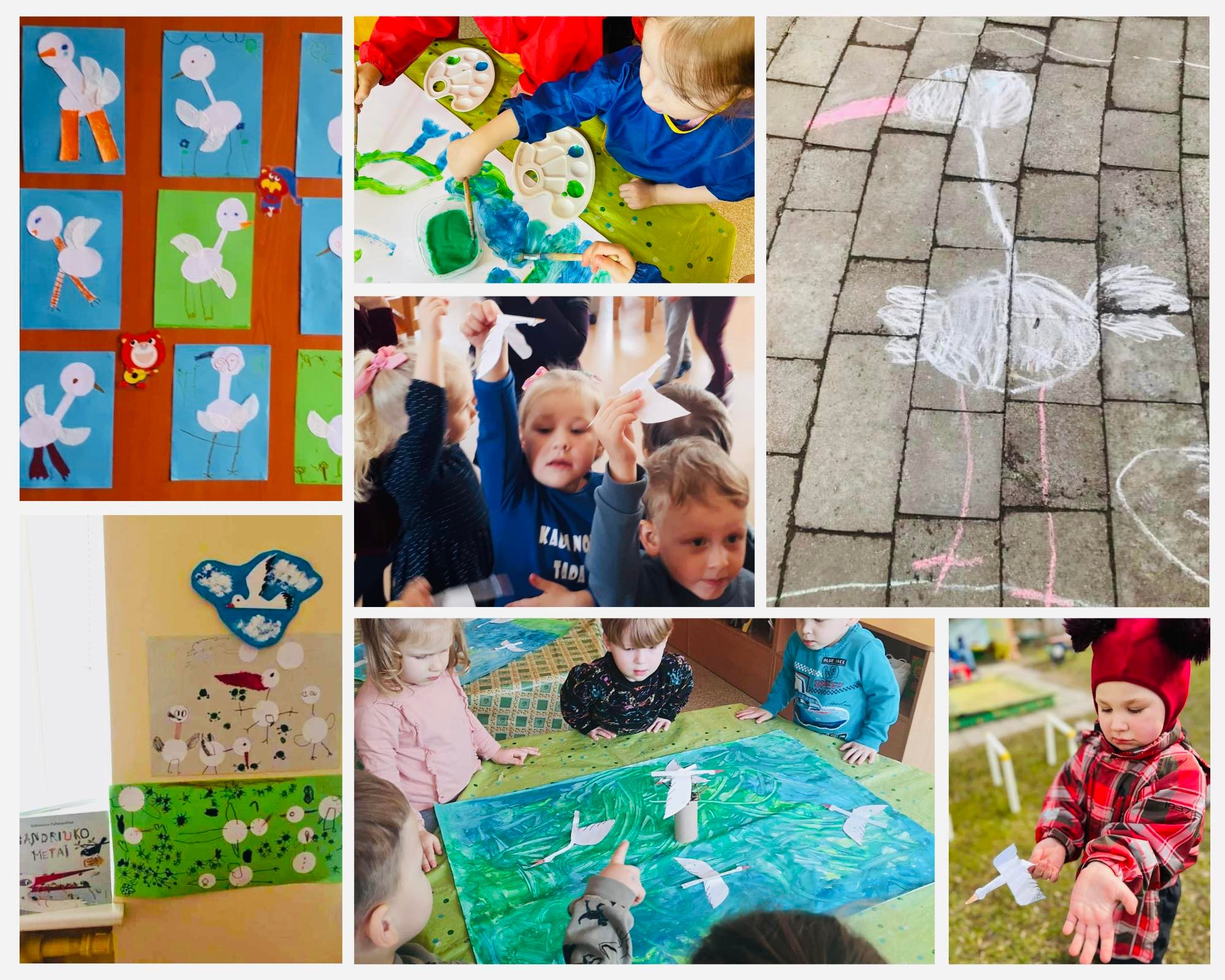 Tęsiasi veiklos, skirtos Žemės dienai paminėti. Penktadienį veikė kūrybinės dirbtuvėlės „Gandriukai“. Vyresnieji vaikai lankėsi mažųjų grupėse ir kartu kūrė pavasarinius paveikslus.