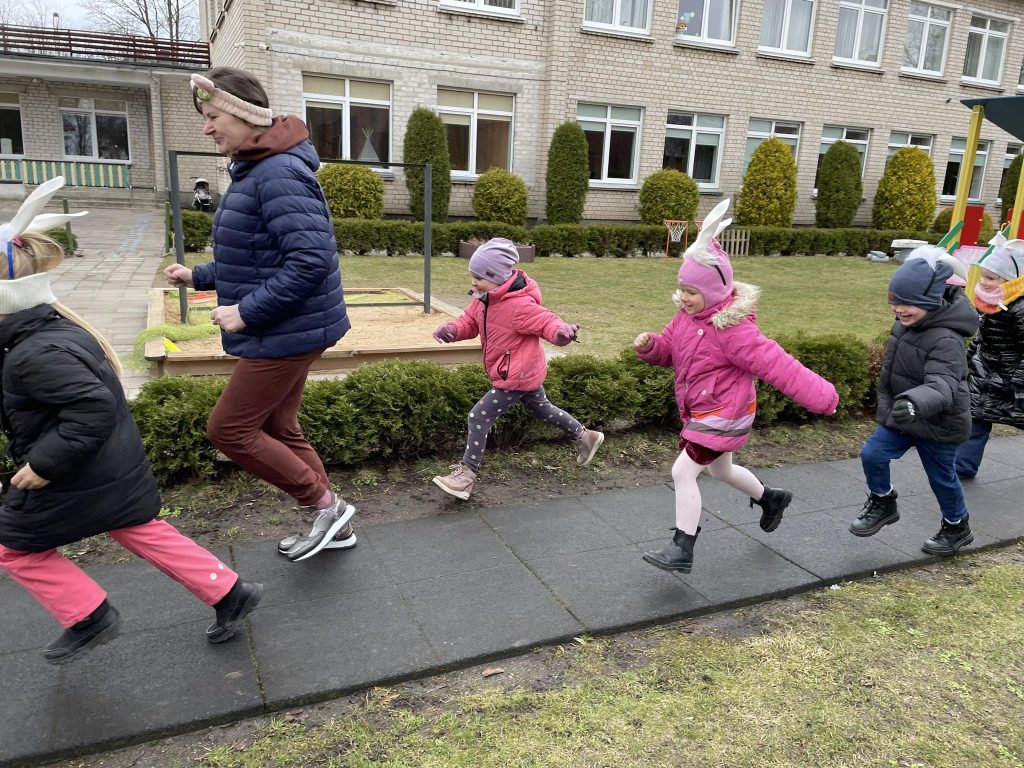 Tęsiame jau tradiciniu tapusį „Velykinių kiškių bėgimą“. Vaikams tereikėjo turėti tvarias ausytes, greitas kojeles, plačias šypsenas ir jausti draugą šalia. Pasitikrinome, ar esame patys greičiausi, vikriausi, šokliausi kiškučiai, pasiruošę velykiniam startui. Vaikai pajautė masinio bėgimo teikiamas džiugias emocijas, tenkino pavasarinį poreikį fiziniam aktyvumui.