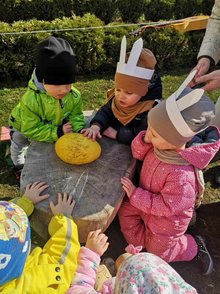Po gražiausių pavasario švenčių viso darželio mažieji dalyvavo Velykų Bobutės edukacinėje valandėlėje. Vieni svečius pasitiko grupėje, kur kartu su Velykų Bobute dainavo, spėliojo, kaip marginami margučiai, vardijo jų spalvas, kiti – lauke su Kiškiais žaidė judriuosius žaidimus, sportavo. Atsisveikindama Velykų Bobutė linkėjo vaikams šilto pavasario ir geros nuotaikos.