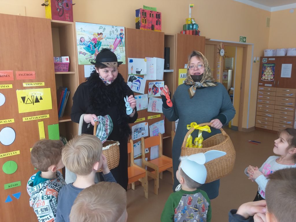 Visi, dideli ir maži džiaugsmingai paminėjome Šv. Velykas. Nors šventės tradicijos šiemet kiek kitokios, bet įvairių užsiėmimų netrūko. Vaikai kartu su mokytojomis išradingai pasipuošė grupės langus, darželio kieme „apgyvendino” margučius, kuriuos kūrė ir grupėse, ir namuose kartu su tėvais. Akį džiugino didysis margutis, išgražintas vaikų darbais – pavasarinėmis gėlėmis. Kiekvieną grupę aplankė pasakų personažai –Velykų Bobutė ir Varna. Jos papasakojo apie Velykų tradicijas ir svarbiausią simbolį – margutį. Diena buvo paminėta su dainomis, šokiais ir žaidimais. Susitikimus organizavo Aušrinė Kalakauskienė, Renata Bumbliauskienė ir Kristina Liutkienė.