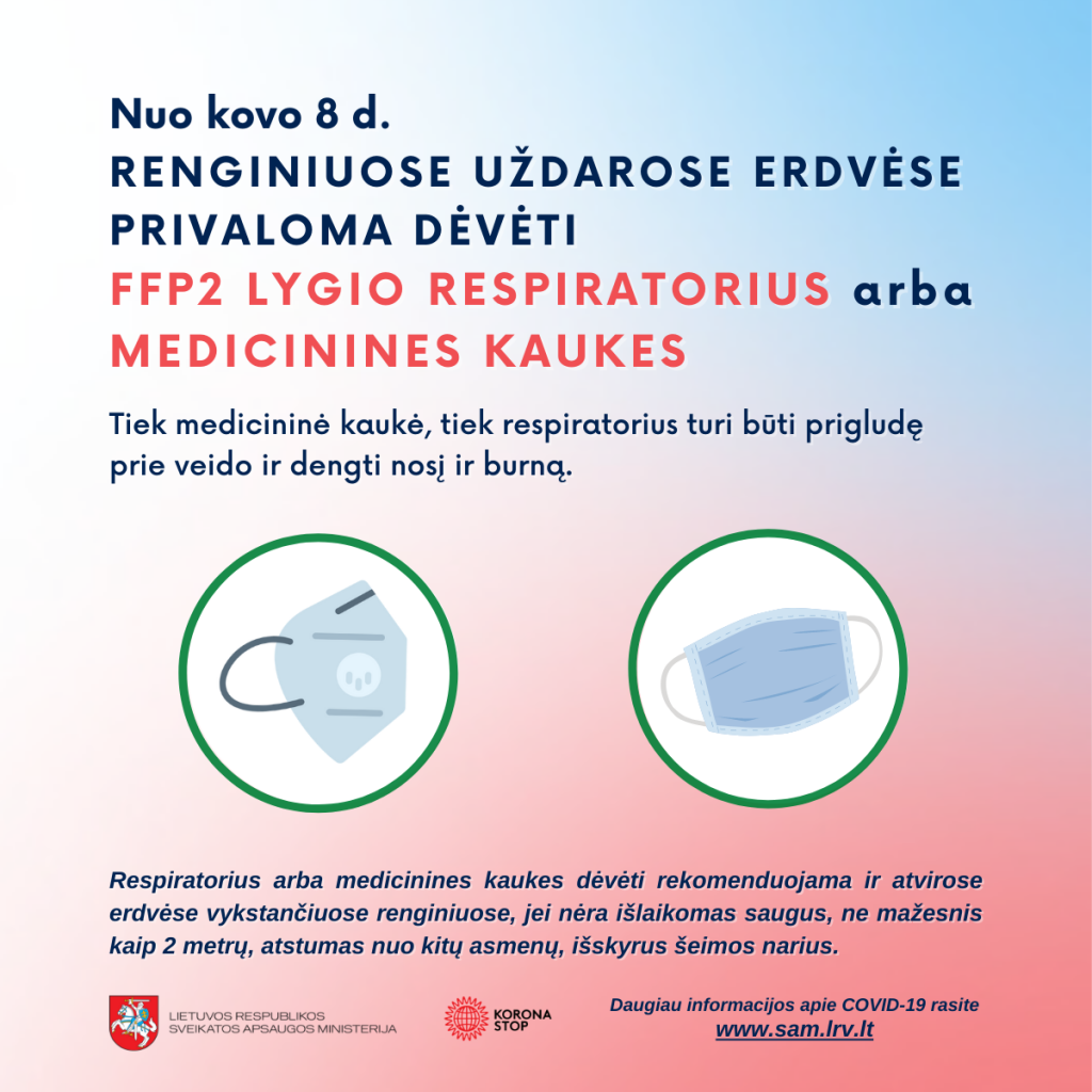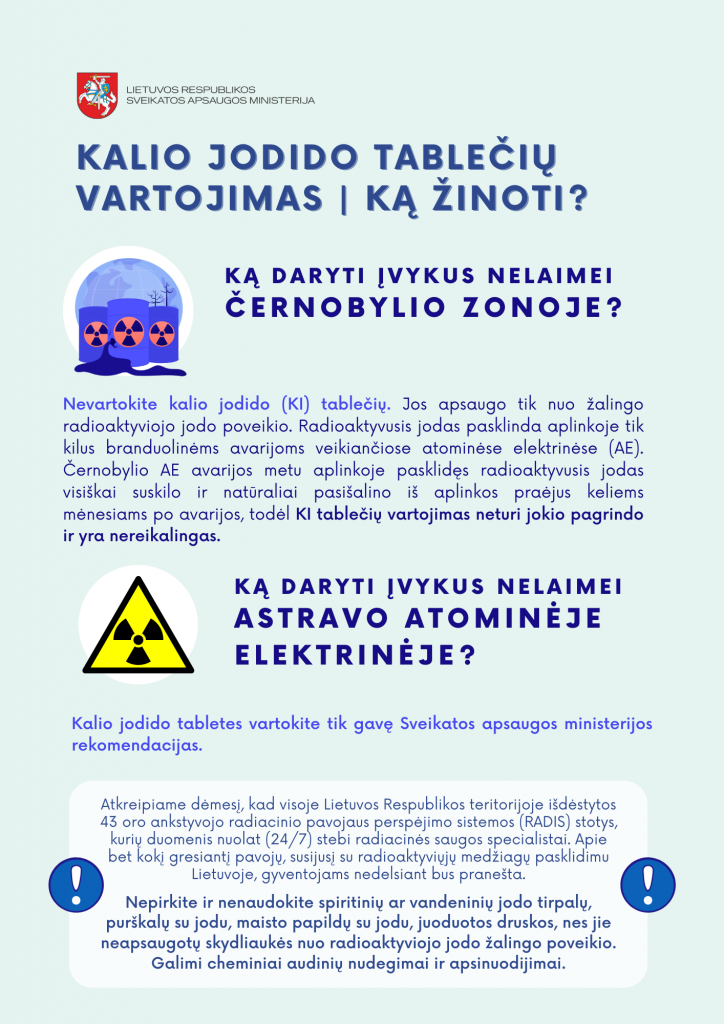 Dalinamės informacija apie kalio jodido tablečių vartojimą, nauja kaukių dėvėjimo renginiuose tvarka ir sveikos mitybos plakatais.
