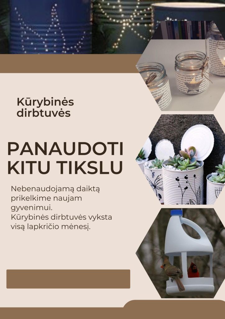 Vykdome aplinkosauginį projektą „ABC žalioji studija“. Kviečiame dalyvauti kūrybinėse dirbtuvėse „Panaudoti kitu tikslu“
