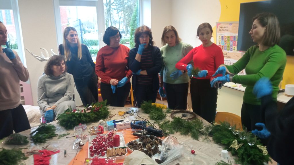 Dvi popietes „Saulutėje“ kvepėjo pušimis ir eglėmis. Mūsų kolegė Julija dalinosi patarimais, kaip patiems susikurti kalėdines dekoracijas ir švęsti Kalėdas tvariau. Dalyvaudami šiame nuostabiame užsiėmime, mes išgyvenome ne tik kūrybinį malonumą, bet ir pasimokėme vertingų dalykų, kurie leido mums suvokti kalėdinių kompozicijų kūrimo subtilybes ir atskleisti savo kūrybiškumą.