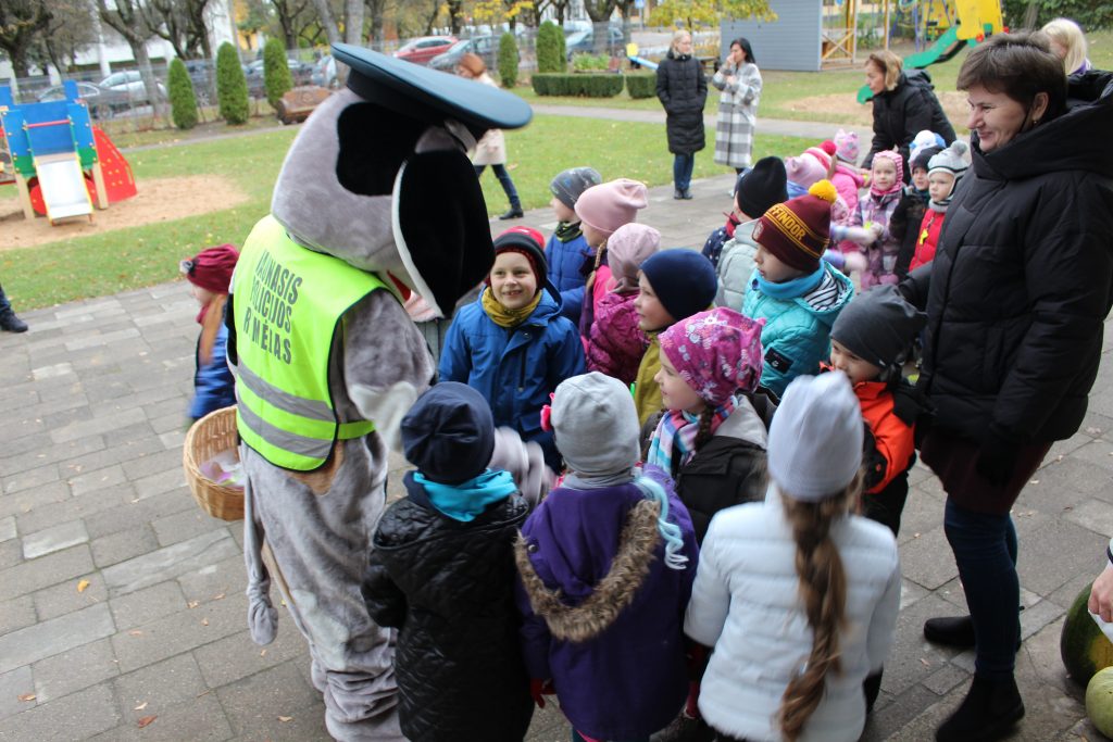 Minėdami Atšvaitų dieną, sulaukėme svečių iš Mažeikių rajono policijos komisariato. Policijos pareigūnai bei jų draugas Amsis parodė, kaip teisingai užsisegti atšvaitus, priminė, kad jį būtina segėti tamsiu paros metu, o esant blogoms oro sąlygoms dėvėti ir ryškiaspalvę liemenę. Dėkojame policijos bičiuliui Amsiui ir jo draugams už įspūdingą susitikimą ir bendradarbiavimą.