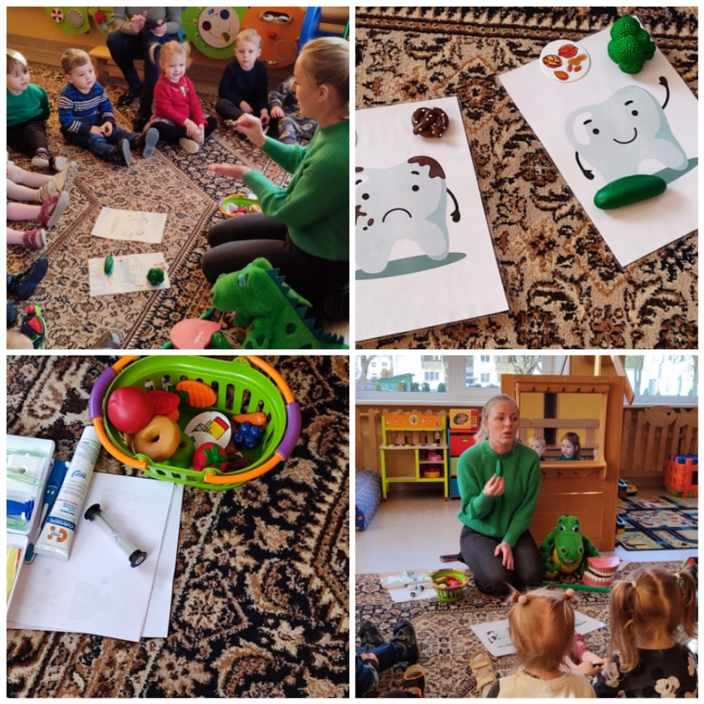 Susitikimai su visuomenės sveikatos biuro specialiste Jurgita Kesminiene, labai laukiami. Dantukų higiena ir jų priežiūra kartu su žaliuoju krokodiliuku, vaikams yra suprantama ir įdomi. Mažieji žaisdami, patys mokosi taisyklingai naudotis dantų šepetėliu. Ugdymas per patirtį – patraukli ugdymo forma.