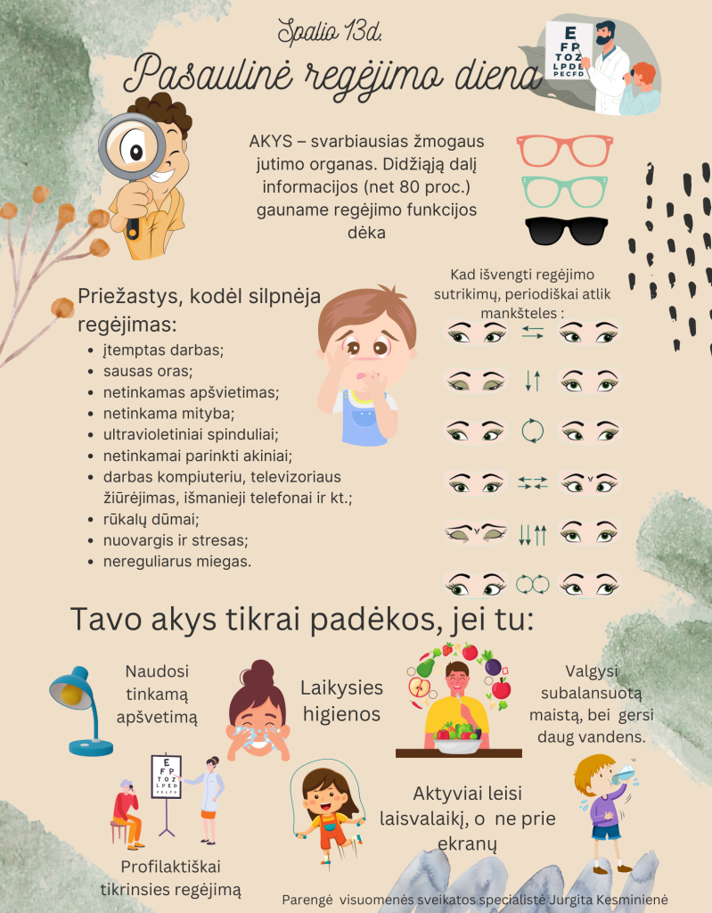 Visuomenės sveikatos specialistė Jurgita Kesminienė primena, kad akys- vienas iš svarbiausių žmogaus jutimo organų.